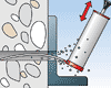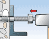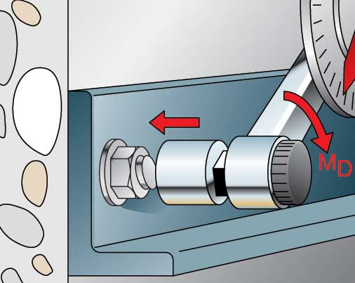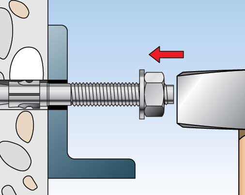 •Ennen kiilapultin lyöntiä sisään mutteri on asetettava oikean asennussyvyyden kohdalle (pultti on n.2-3 mm eteenpäin työnnettynä)
